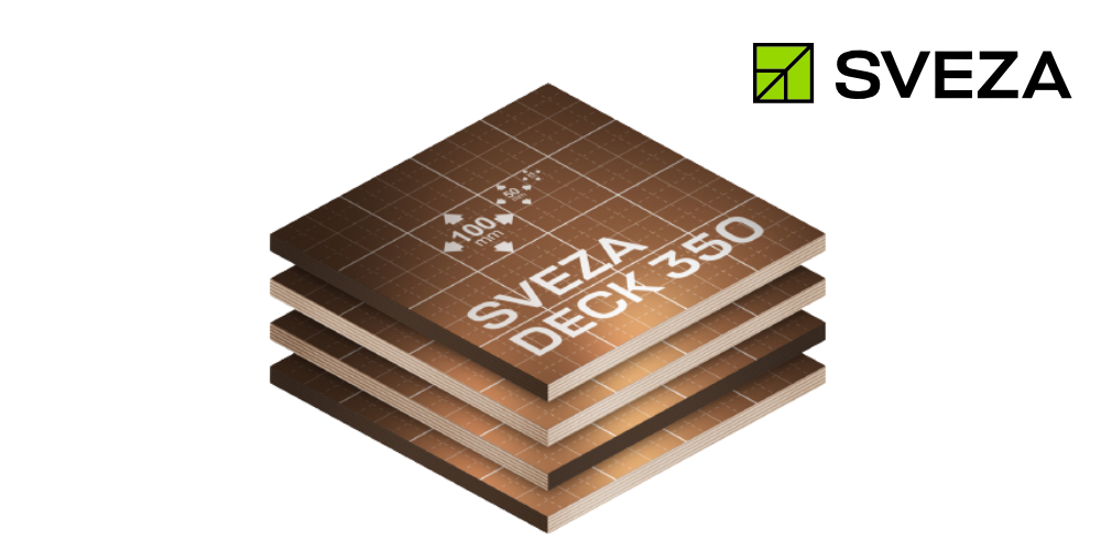 SVEZA Deck 350, döşeme kalıpları için tasarlanmış, kullanımı kolay ızgara desenine sahip özel film kaplı kontrplaktır.